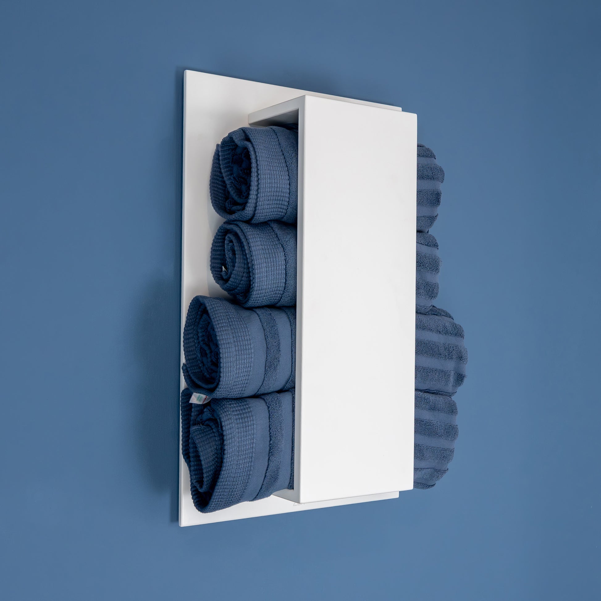 Floating Towel holderA wall-mounted floating towel holder. Your towels rolled up or folded flat, this towel holder is compact and neat. Now your beautifully stored towels are on hand, ready to be grabbed, when and where you need it. An elegant towel holder manufactured to European standards. Proudly designed and made in South Africa by South Africans. Installation in 3 easy steps: - drill holes in wall
